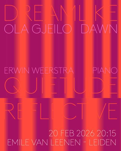 ‍06-03-2026 Stichting Musica in Kasteel Cannenburch, Apeldoorn 07-03-2026 Kunstkring Hardergijp 08-03-2026 Muziekgebouw, Eindhoven